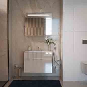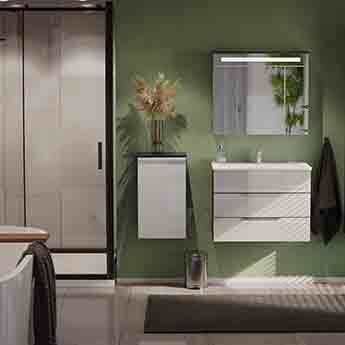 Die Möbel der Serie Kara überzeugen durch ihr modernes, geradliniges Design und ihre durchdachte Funktionalität. Die lackierten Glafronten verleihen Deinem Badezimmer eine zeitlose Eleganz, während die praktischen Details Ihren Alltag erleichtern.