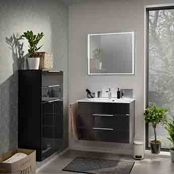 Entdecke die Kara-Badmöbelserie von Fackelmann – moderne Designs, elegante Glasfronten und stilvolle Dekore in Anthrazit, Weiß oder kombiniert. Setze farbige Akzente und gestalte Dein Badezimmer individuell.