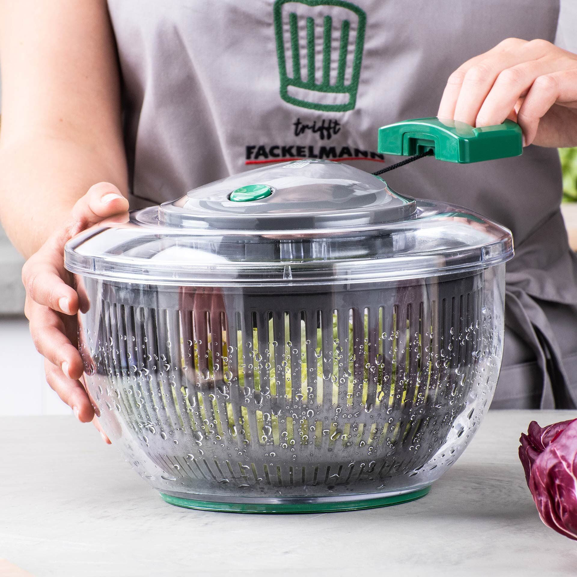 Auf die Plätze, fertig, schleudert! Die Chefkoch trifft Fackelmann Salatschleuder ist aus meiner Küche nicht mehr wegzudenken - vor allem für Blattspinat ein Muss!